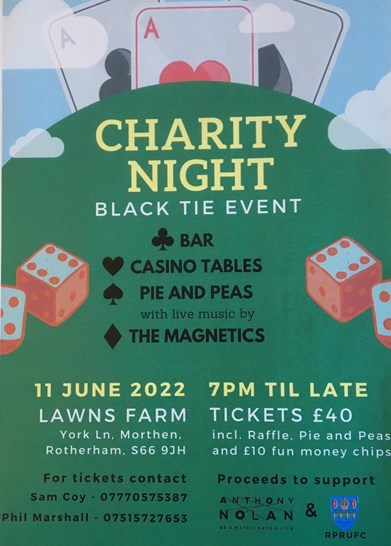 Get ready for a great night out, whilst raising funds for the club and Anthony Nolan, and you can be there!
